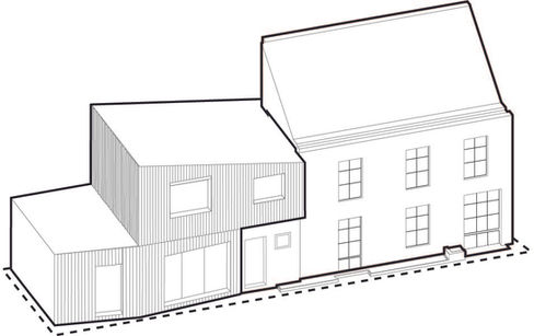 L’intérêt de ce projet d’extension réside dans son travail d’intégration harmonieux d’un nouveau volume à la forme existante de cette maison linéaire.